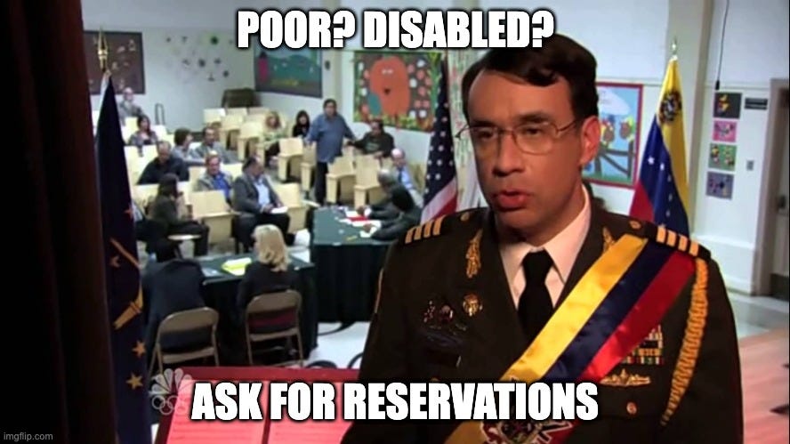 Leftists support affirmative action. India has implemented the mother of all affirmative action policies: Reservations. Whereas most Western countries implement affirmative action as a soft preference for disadvantaged groups, India implements hard quotas for disadvantaged groups. This is identity politics on steroids. Quotas diffuse into almost every political discussion. Anytime a group feels disadvantages? Demand for quotas. Feeling poor? Demand quotas. It ends polluting most discussions.